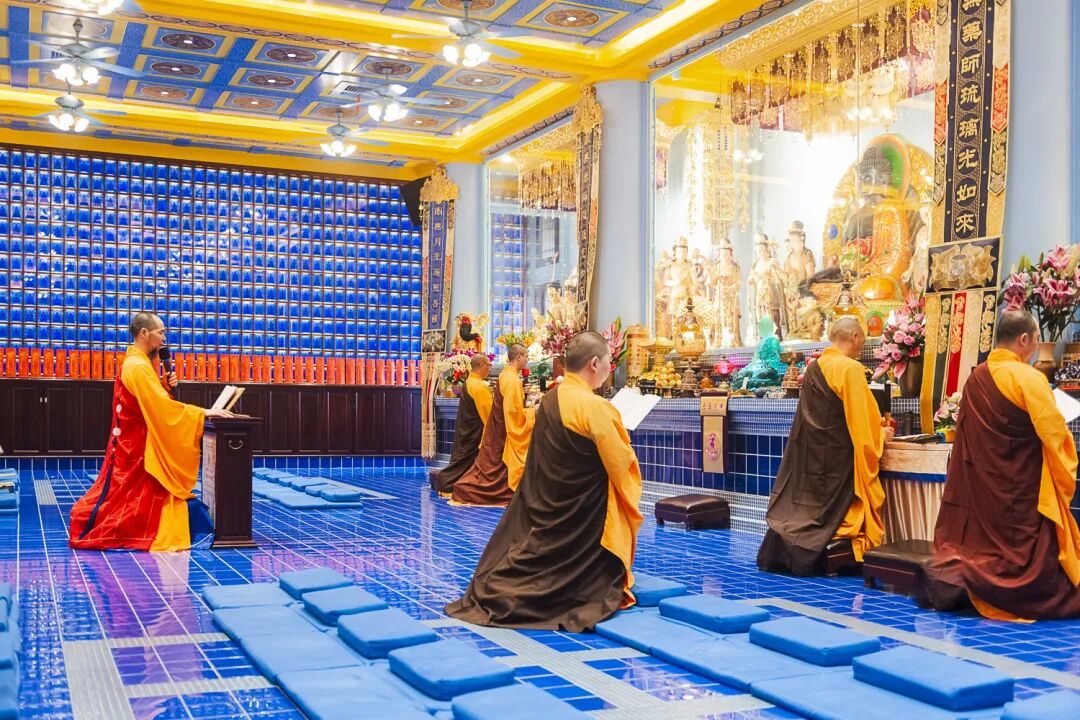 本次专修法会,忠明大和尚将带领寺院常住法师和义工,依药师法门专修仪轨如法修行(根据上级关于疫情防控的要求,法会不对外)。十方善信可通过寺院网络共修平台居家随喜参加线上共修,共沐佛恩,同沾法喜。(注意:在家许愿结名也需持八关斋戒,请提前一天茹素)
