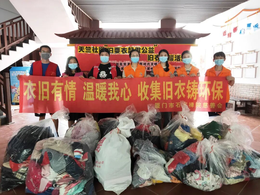 为响应国家环保号召、传递爱心、发挥旧衣物的社会价值,在厦门市石室禅院慈善会会长忠明法师的倡议下,秉承“感恩、净心、惜福”的理念,以“效仿佛陀慈悲,弘扬药师精神”为宗旨,慈善会积极携手社区、企业、学校,坚持开展以“衣‘旧’有情,温暖我心,收集旧衣铸环保”为主题的旧衣回收公益活动。