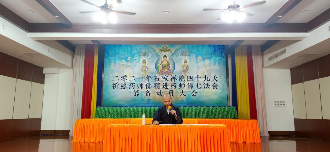 2021年10月20日(农历九月十五),石室禅院召开四十九天念佛共修活动筹备动员会,会议由石室禅院住持上忠下明大和尚主持。
