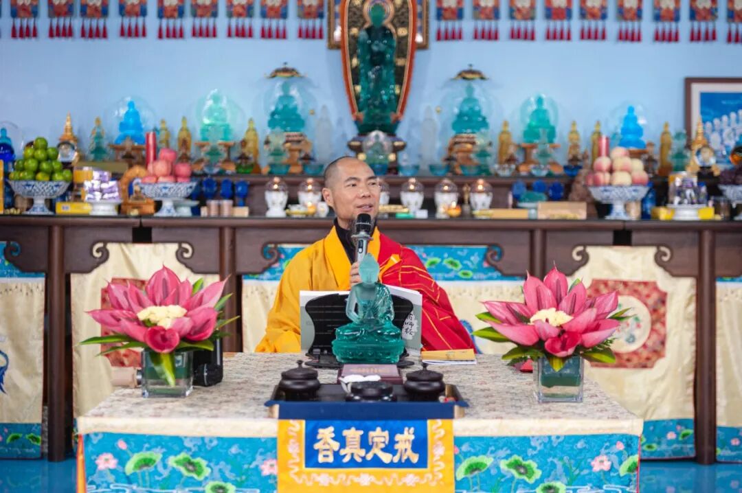 2021年10月22日至28日,福泉禅寺辛丑年药师法门许愿结名专修大法会期间,每日下午3时至5时30分,住持忠明大和尚依据《药师经》,为修法居士开示药师法门,解经释义,令大众得闻正法,从中受益。