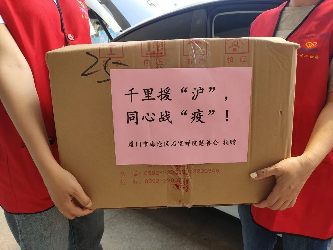 2022年4月7日,石室禅院慈善会在慰问厦门市海沧医院时,遇见了正准备出发援助上海抗击疫情的厦门市海沧医院医疗队。石室禅院慈善会会长忠明法师听闻这个消息后,赞叹医疗队千里援“沪”、同心抗“疫”的善行。