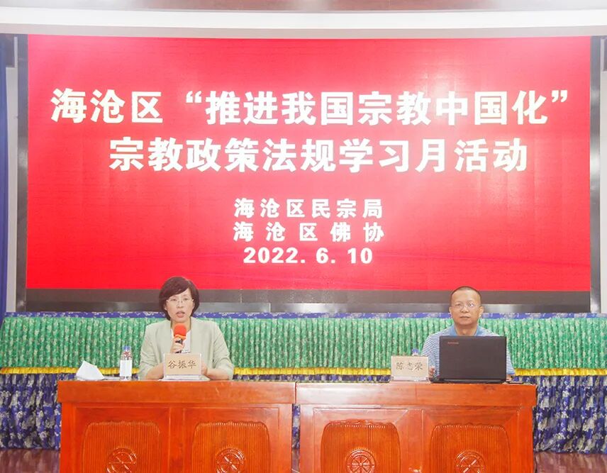 2022年6月10日上午9时,海沧区民宗局“推进我国宗教中国化”宗教政策法规学习月活动在石室禅院举行。海沧区石室禅院、石峰岩寺、真寂寺、洪坑岩寺、云塔寺、东屿基督教堂、海沧基督教堂、新垵基督教堂、大金门基督教聚会点、海沧天主堂等宗教场所工作人员(含财务人员)、教职人员参加本次活动。会议由海沧区民宗局谷振华局长主持。