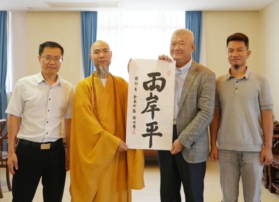 2023年9月12日上午,台湾竞争力论坛执行长、台湾中华诗词艺术联合会理事长谢明辉一行在厦门市海沧区委台办谢善锋主任及海沧区书法家协会主席张胤生等文艺家陪同下参访海峡两岸交流基地(厦门市石室书院)。受石室书院院长忠明法师委托,石室书院秘书长陈净延,惟一法师与工作人员热情接待谢理事长一行,并一同进行了座谈及书法交流笔会。